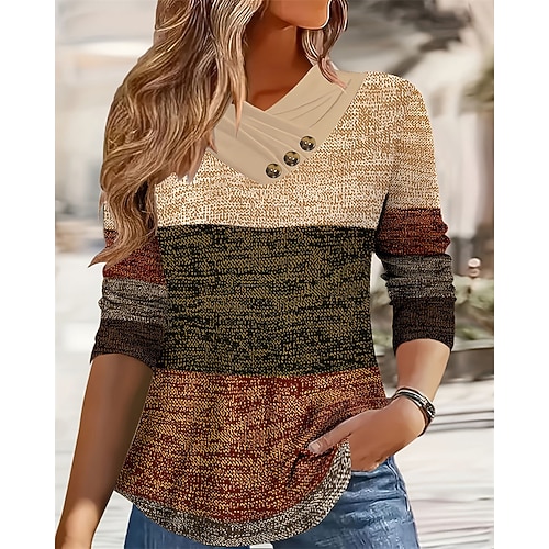 Per donna Blusa Top Eleganti Blocco di colori Semplice Elegante Vintage Signore Manica Lunga Scollo a V Top Regolari Lavoro Quotidiano Ferie Arricciato Bottoni Stampato Blu Rosa Viola Verde Cachi