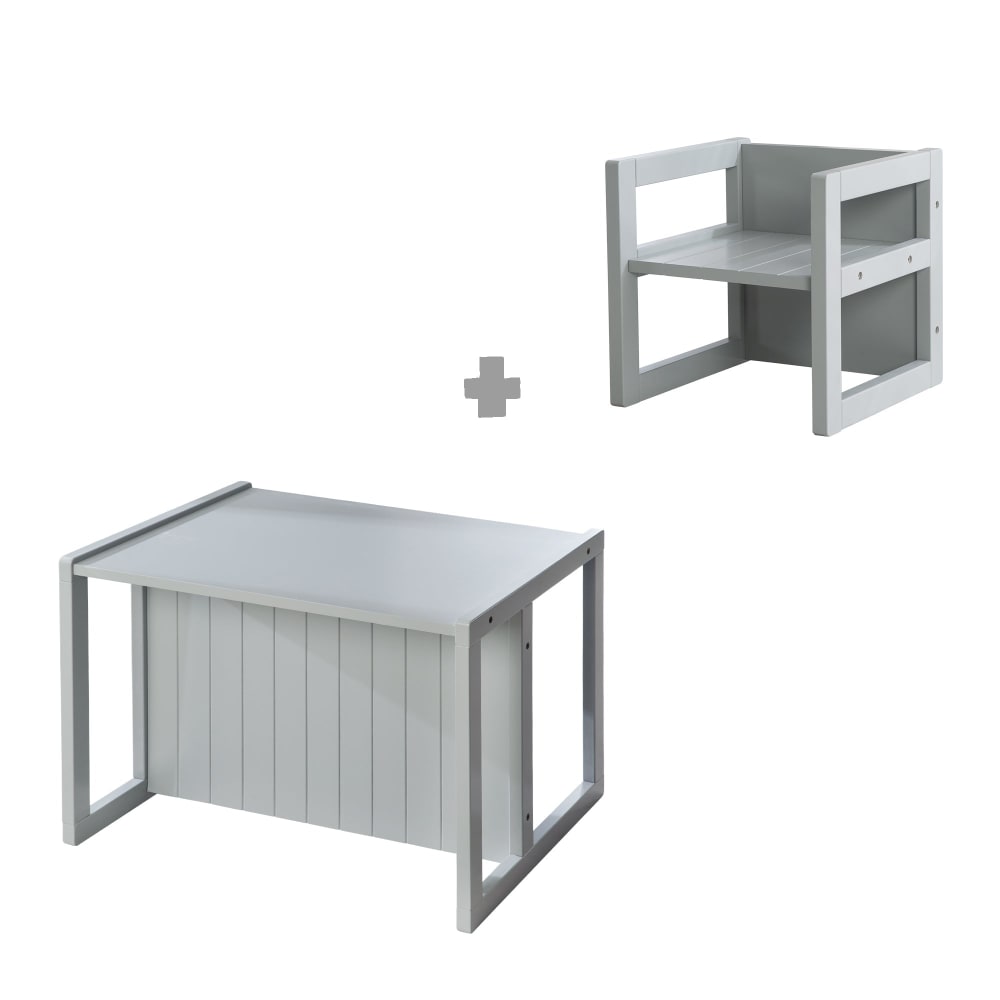Set tavolo e sedia bambino reversibile in legno grigio