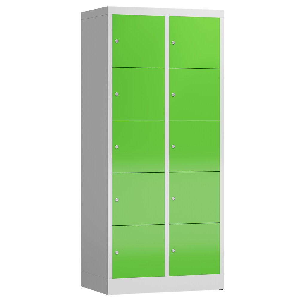 ClassiX Schließfachschrank, 2 Abteile à 5 Fächer, 1800 x 800 x 500 mm, lichtgrau/gelbgrün