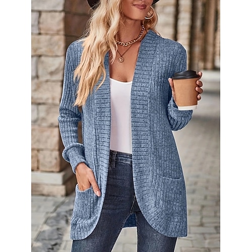 Per donna Giacca Casual Confortevole Traspirante Tasca Casual Semplice Vacanza Streetwear Abbigliamento quotidiano Uscire Aperto davanti Regolare Senza colletto Vestibilità regolare Manica Lunga