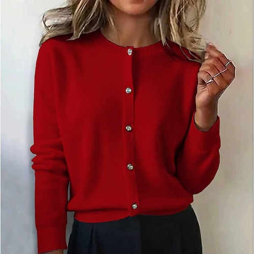 Per donna Cardigan Quotidiano Girocollo Bottoni Manica Lunga Top Regolari Maglia Lavoro Quotidiano Ferie Blu Rosso bordeaux Primavera Autunno