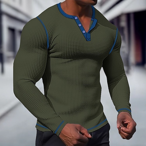 Per uomo maglietta Camicia Henley Waffle Camicia Henley T-shirt Maglia a maniche lunghe Liscio Manica Raglan Henley Strada Da mare Manica lunga Collage Abbigliamento Poliestere Di tendenza Originale