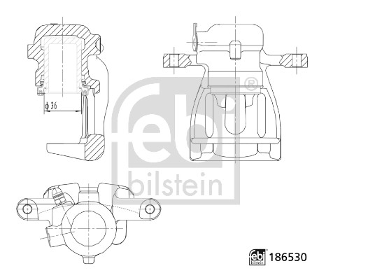 FEBI BILSTEIN Bremssattel 186530 hinten rechts Bremssattel(1-Kolben) für LAND ROVER LR001024 LR007203 LR027850
