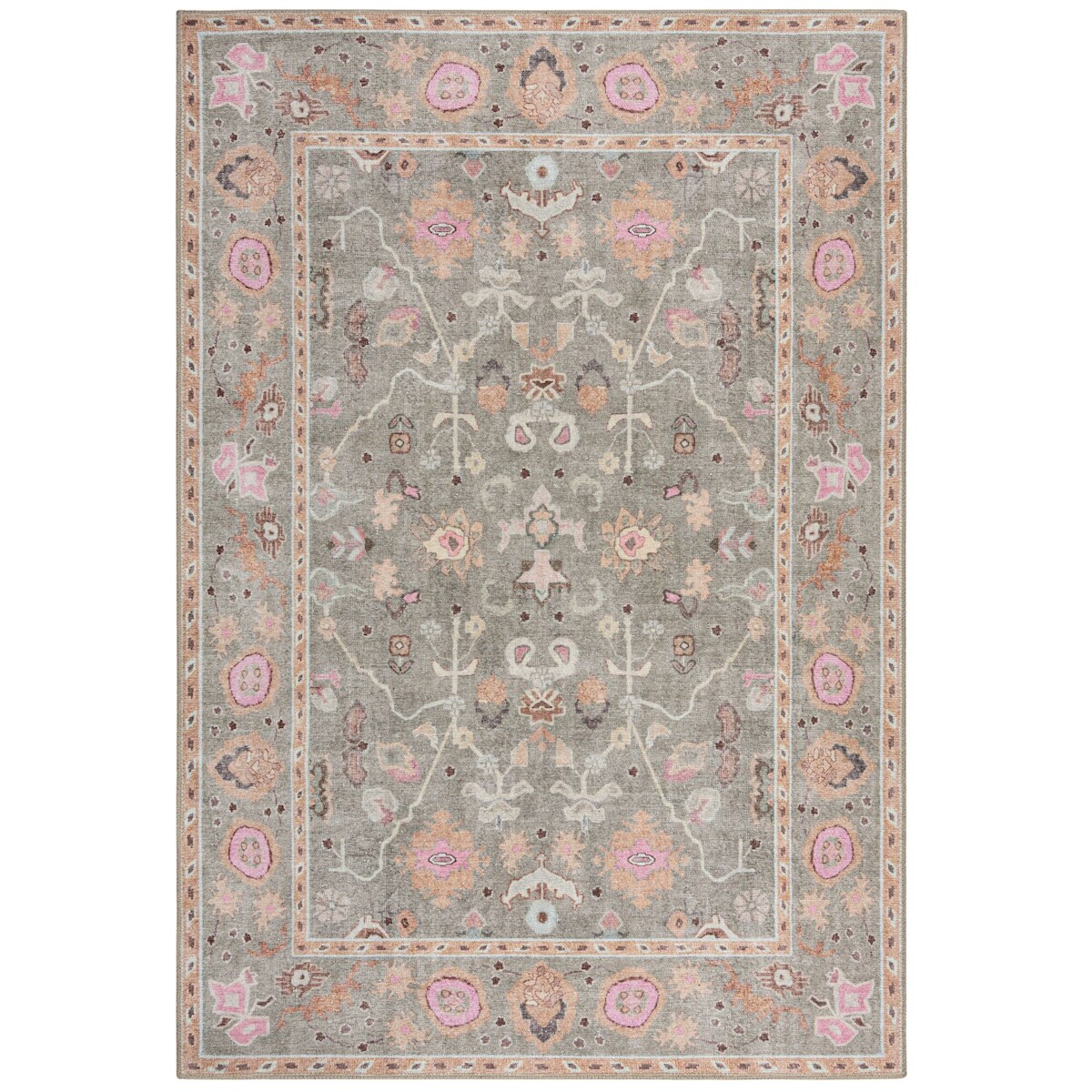 KADIMA DESIGN Waschbarer Teppich Floral Orientalisch Grau Rosa | Vintage-Design | Kurzflor | 152x230cm