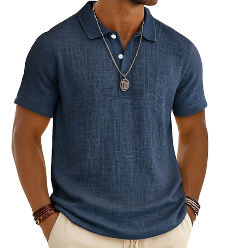 Per uomo Camicia di lino Polo Vacanza Casuale Classico Manica Corta Moda Tinta unica Bottoni Estate Primavera Vestibilità regolare Nero Bianco Verde chiaro Grigio Blu marino Cachi Camicia di lino