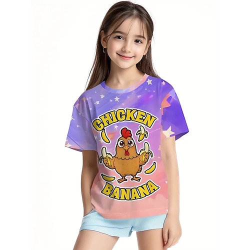 Ragazze 3D Pollo e banana Grafico Maglietta Manica Corta Stampa 3D Estate Primavera Sport Moda Streetwear Bambini 4-12 Anni Girocollo All'aperto Casuale Quotidiano Vestibilità regolare