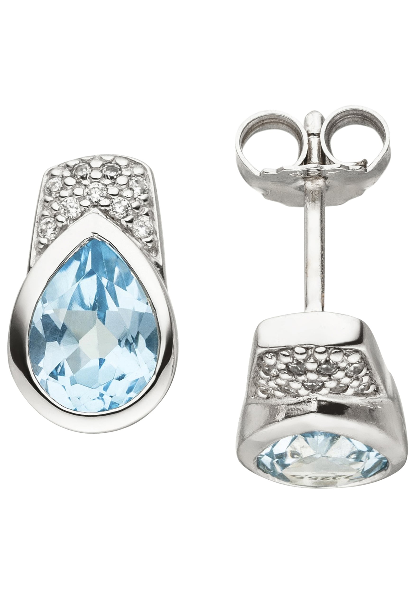 Paar Ohrstecker JOBO, blau (hellblau, hellblau), Ohrringe, Damen, Silber 925 (Sterlingsilber), 925 Silber mit Blautopas und 18 Zirkonia
