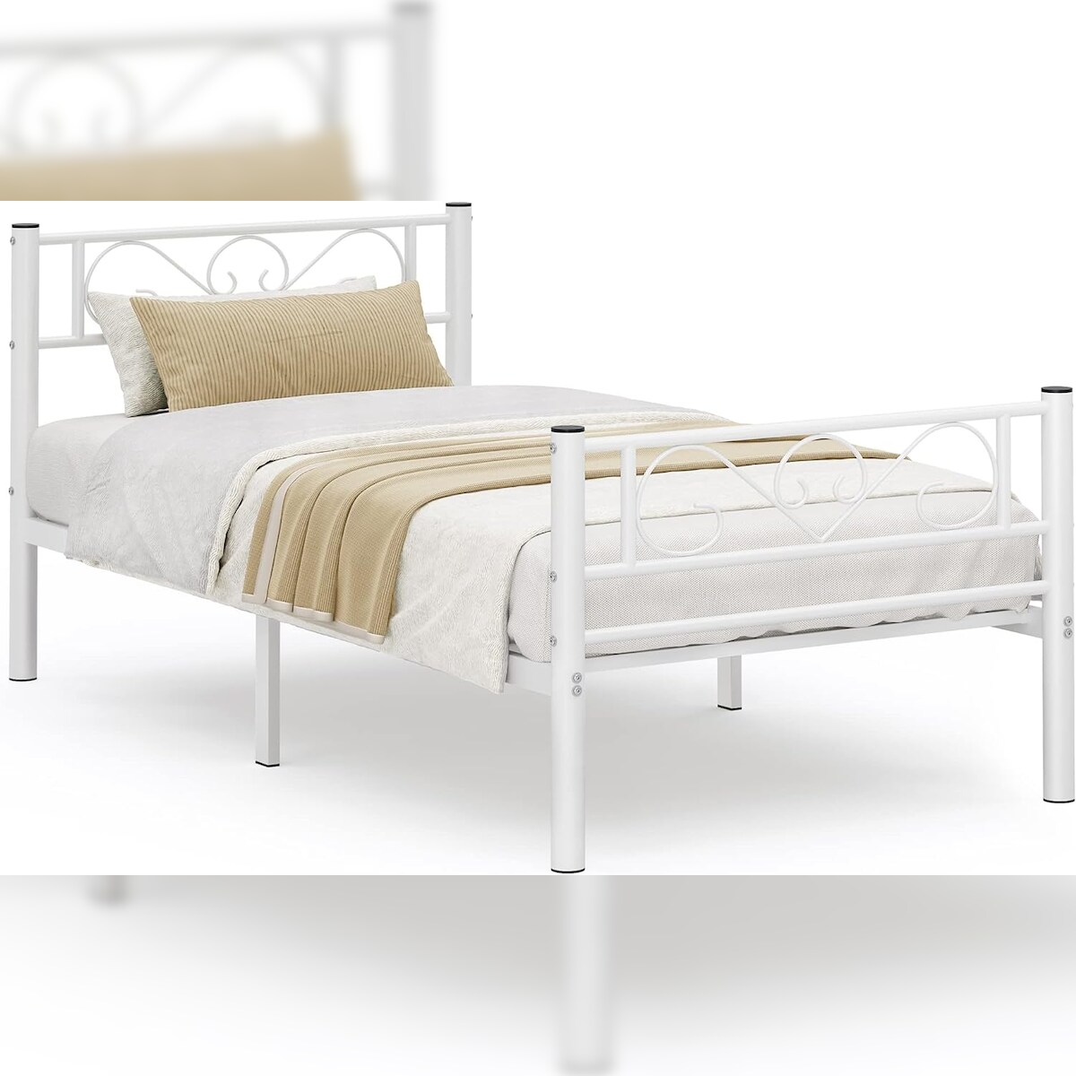 Bettgestell Bettrahmen aus Metall, passend für 90 x 190 cm Matratze, Robust Gästebett, hochwertige Stützbalken, für Erwachsene, weiß