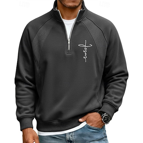 Giorno dell'Indipendenza Americana Per uomo Testo Polo Polo con zip Maglia da golf Manica Lunga Magliette polo Zip a un quarto Sport Moda Casual Quotidiano All'aperto Vacanza Cerniera Stampato