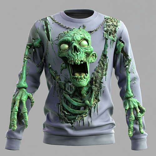 Per uomo Zombi 3D Felpa Punk Festa Gotico Manica Lunga Girocollo Vacanza Verde scuro Viola Verde Girocollo 3D Tutte le stagioni progettista S M L XL XXL XXXL