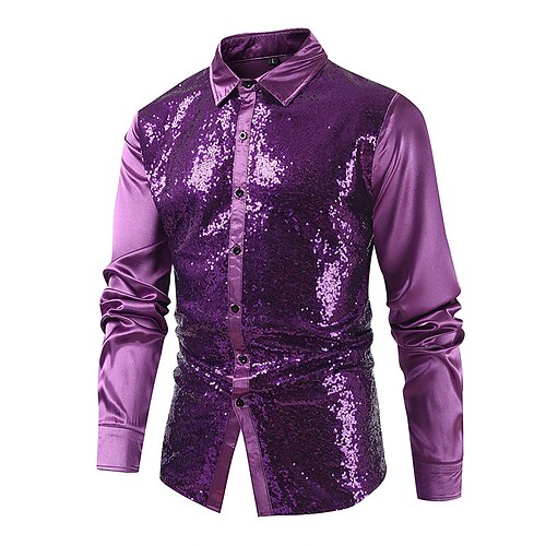 Per uomo Camicia Camicia in raso Camicia elegante Camicia casual Camicia con Bottoni Camicia da Ballo Semplice Matrimonio Feste Blu Viola Manica Lunga Bavero Primavera Autunno Tutte le stagioni