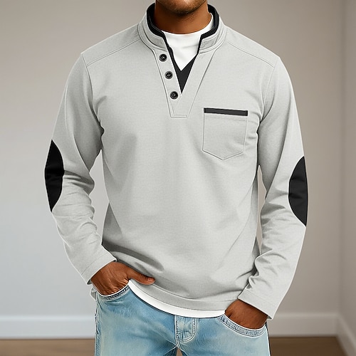 Da uomo Maglietta Collo a V Maglietta Camicia a Maniche Lunghe Camicie da uomo con toppe sui gomiti Manica Lunga Scollo a V Collo alla coreana Estate Tutte le stagioni Patchwork Quotidiano Casual