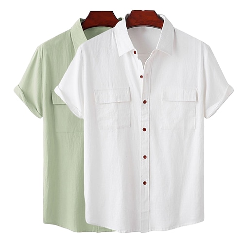 Per uomo Camicia Camicia di lino Camicia Estiva Abbigliamento da spiaggia Camicia con Bottoni Semplice Vacanza Casuale Bianco Verde Verde rosa Bianco blu navy Rosa blu navy Manica Corta Collo