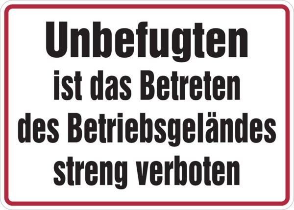 Hinweisschild, Betreten des Betriebsgeländes streng verboten, Alu geprägt, 250 x 300 mm - 350x250x0.45 mm Aluminium geprägt