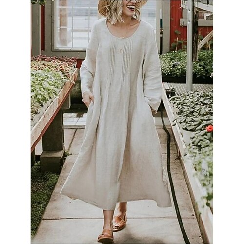 Per donna Abito maxi Finto cotone e lino Elegante Casual Quotidiano Vestibilità regolare Floreale Manica 3/4 Girocollo Rosso Verde Estate Primavera Autunno