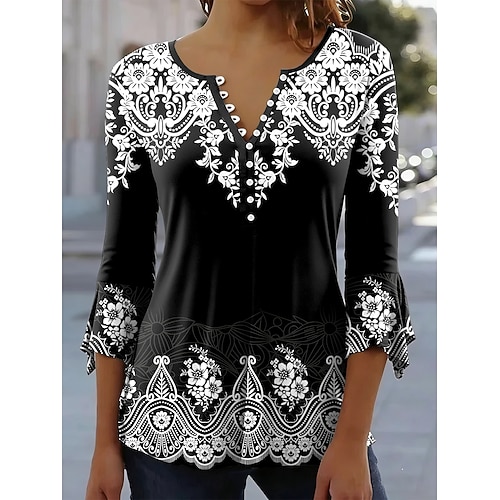 Per donna Camicia Grafico Vintage Elegante Manica Lunga Scollo a V Blu Rosa Grigio Estate Primavera