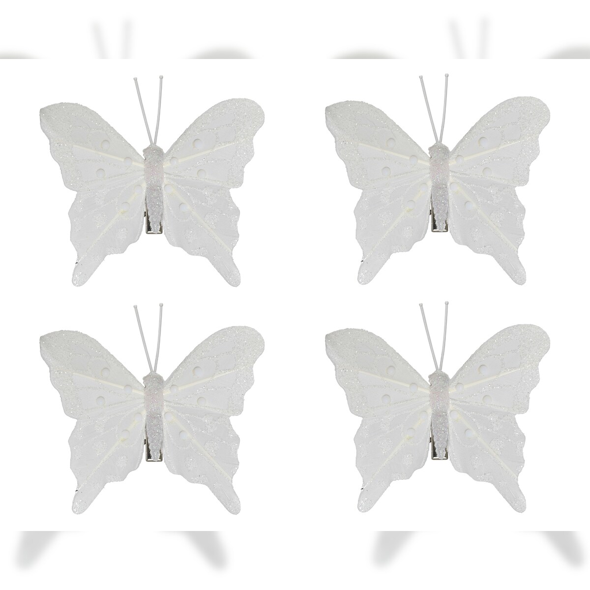 4 Schmetterlinge mit Clip 8cm - Deko Schmetterling zum Dekorieren & Basteln Dekoklammern Christbaumschmuck Hochzeitsdeko Frühlingsdeko Winterweiß