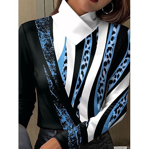 Per donna Maglietta Grafico Leopardo Geometrico Elegante Vintage Casual Manica Lunga Collo Alto Top Regolari Quotidiano Stampato Blu Viola Verde Cachi Primavera Autunno Inverno