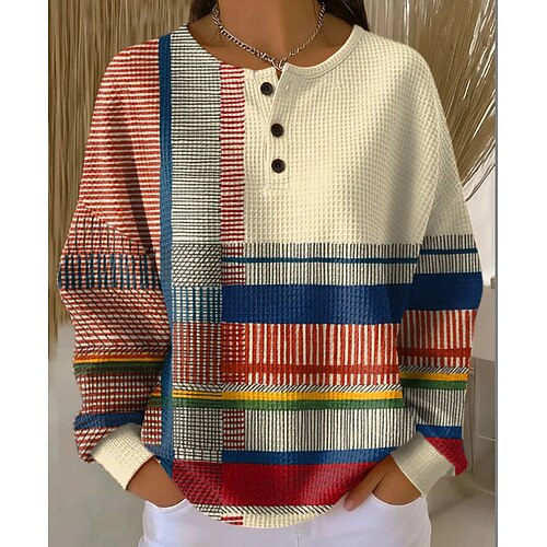 Per donna Felpa Pullover Grafico Geometrico Elegante Vintage Moda Manica Lunga Girocollo Top Regolari Casuale Casa Ospite di nozze Bottoni Blu Rosso scuro Verde Arcobaleno Primavera Autunno Inverno