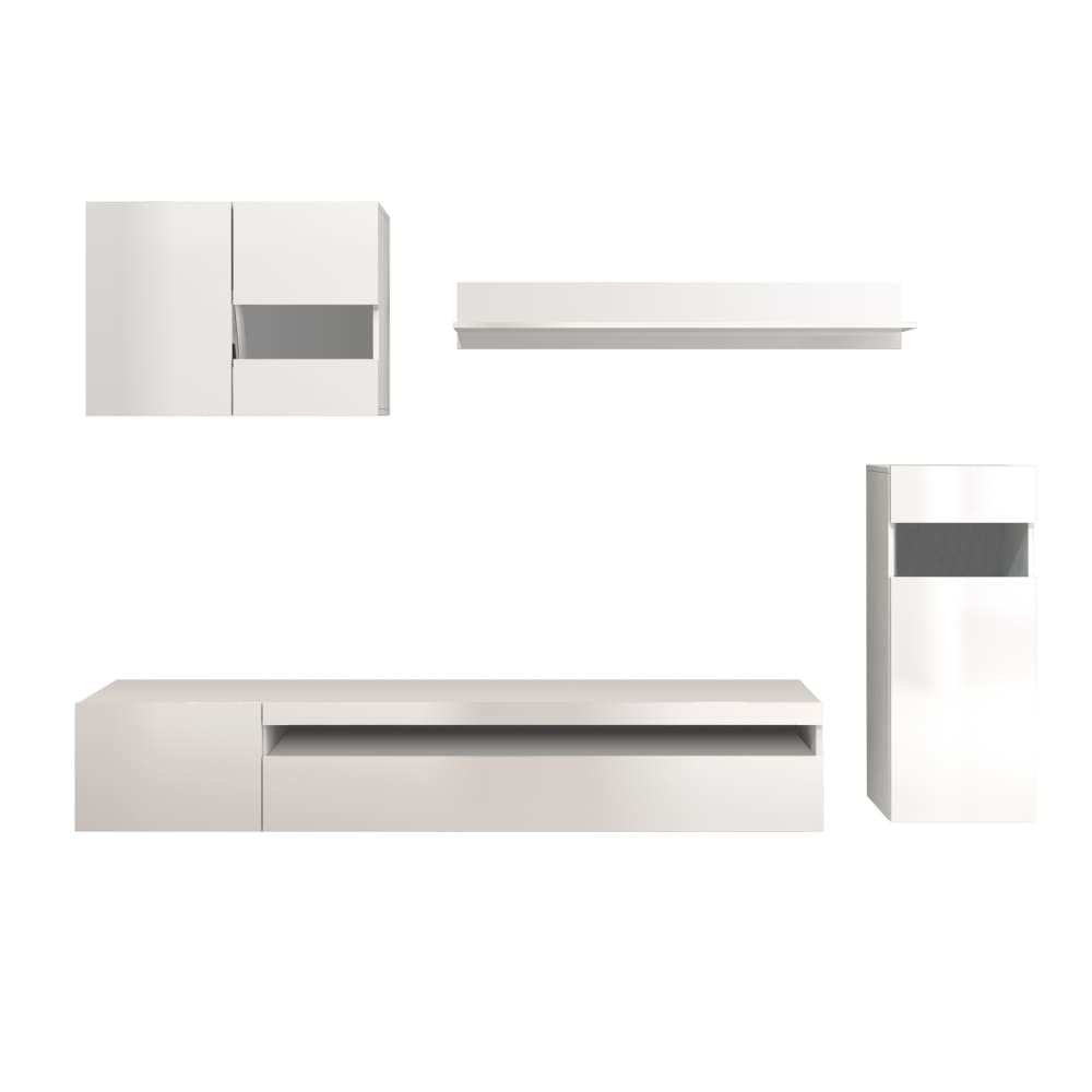 Parete Attrezzata Effetto Legno Bianco Lucido 240x40x160 cm