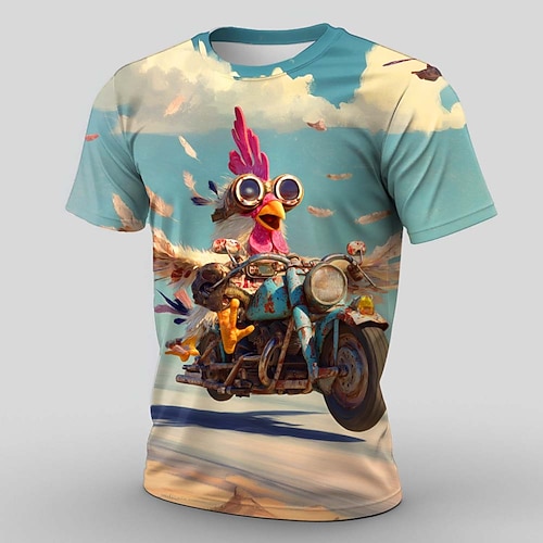Per uomo Animale Gallo Divertente Maglietta Manica Corta maglietta Stampa 3D Girocollo Camicia Esagerato Designer Feste Ferie Blu Cachi Estate Primavera Abbigliamento S M L XL XXL XXXL