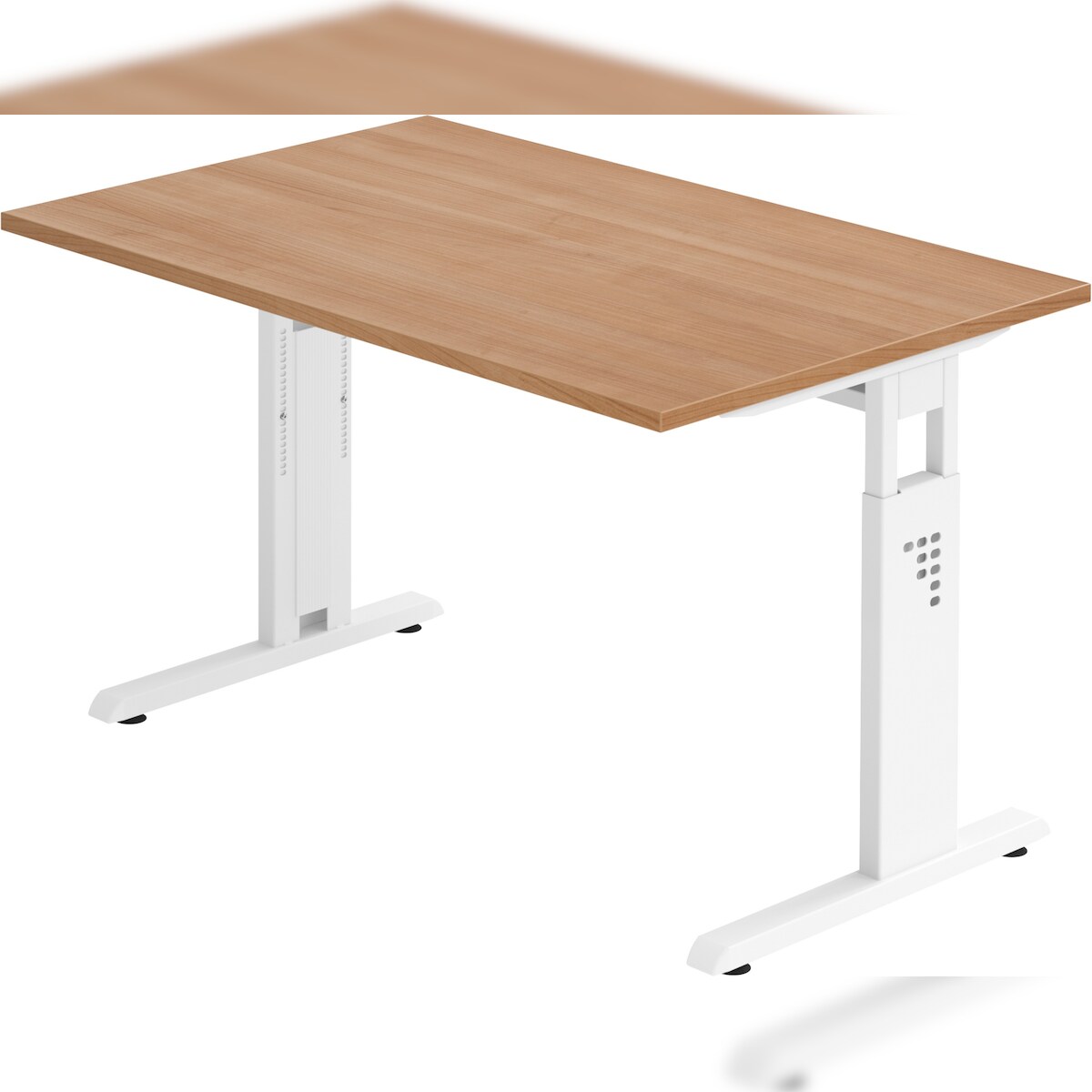 bümö höhenverstellbarer Schreibtisch O-Serie 120x80 cm in Nussbaum, Gestell in weiß - PC Tisch klein für's Büro manuell höhenverstellbar,