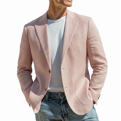 Per uomo Blazer di Lino Colletto ad incastro Moda Classico Casual Tinta unita Blazer in lino Nero Bianco Rosa Vestibilità su misura Monopetto Due Bottoni