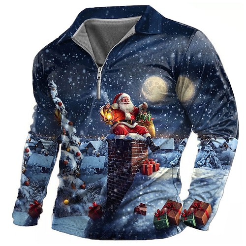 Natale Per uomo Babbo Natale Magliette polo Polo da golf Manica lunga Magliette polo Colletto Informale Abiti da sera per feste Da giorno Da mare Festival Bottoni Stampa 3D Blu scuro