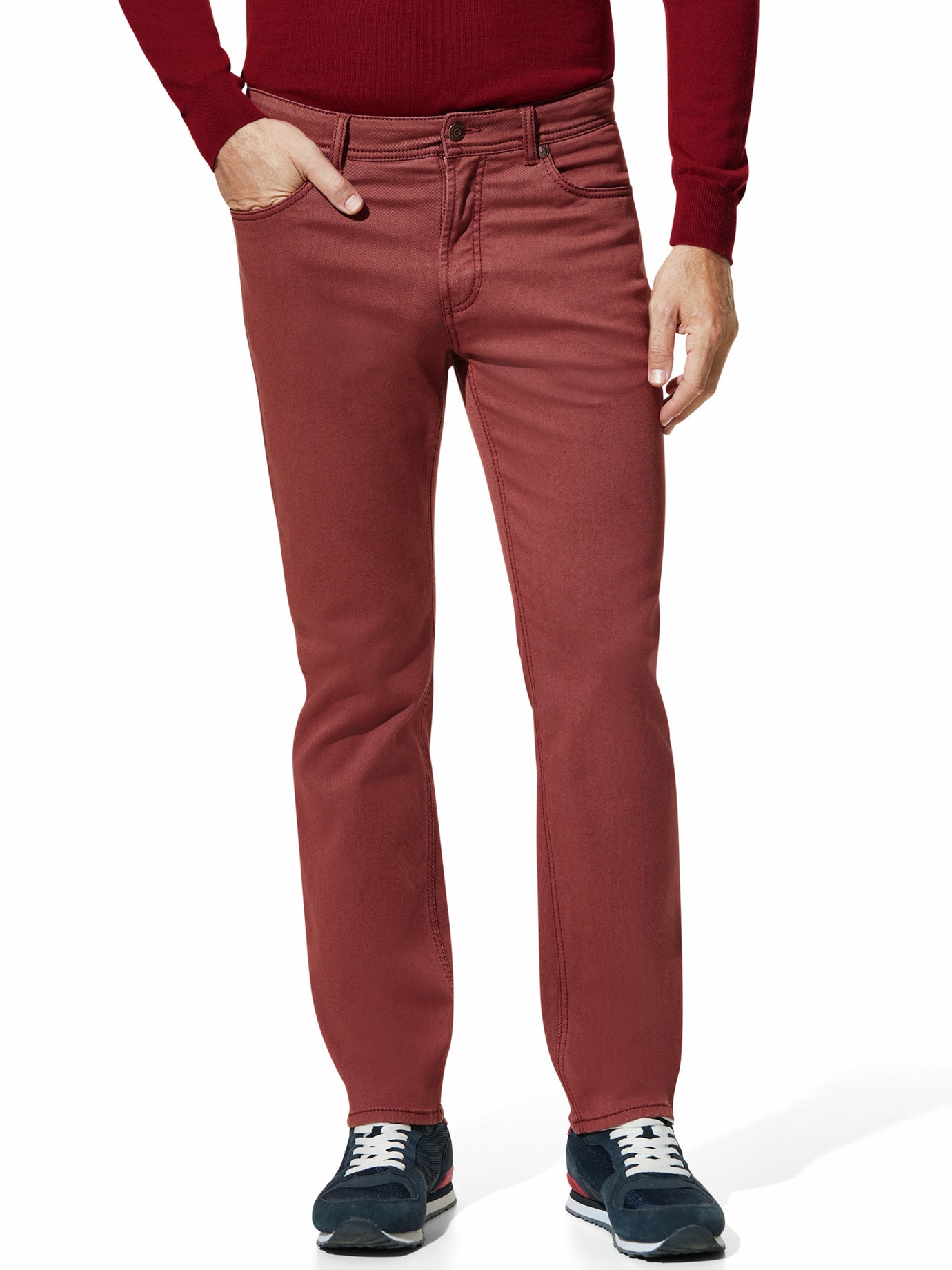 Walbusch Herren Jeans-Hose Sattlerstich Rot