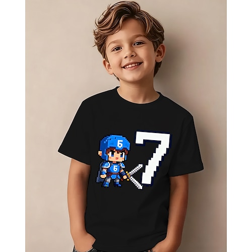 Cotone Bambini Ragazzi Nero Bianco Grafico Personaggio Gergo divertente 67 Maglietta Blusa Girocollo Manica Corta All'aperto Abbigliamento Quotidiano Moda Streetwear Designer Stampa Estate