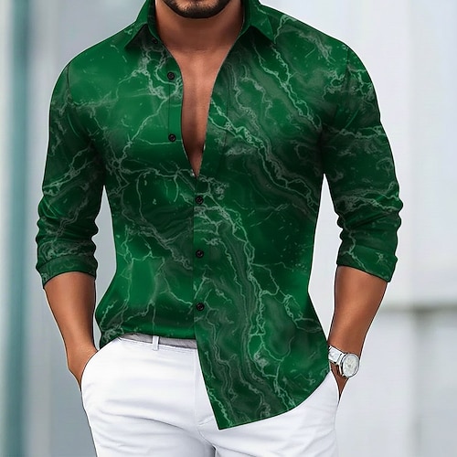 Per uomo Motivo Geometrico Camicia Camicia con Bottoni Manica Lunga Moda Designer Casual All'aperto Ferie Estate Primavera Collo ripiegato Stampato Bottonato Bianco Blu Verde Arcobaleno