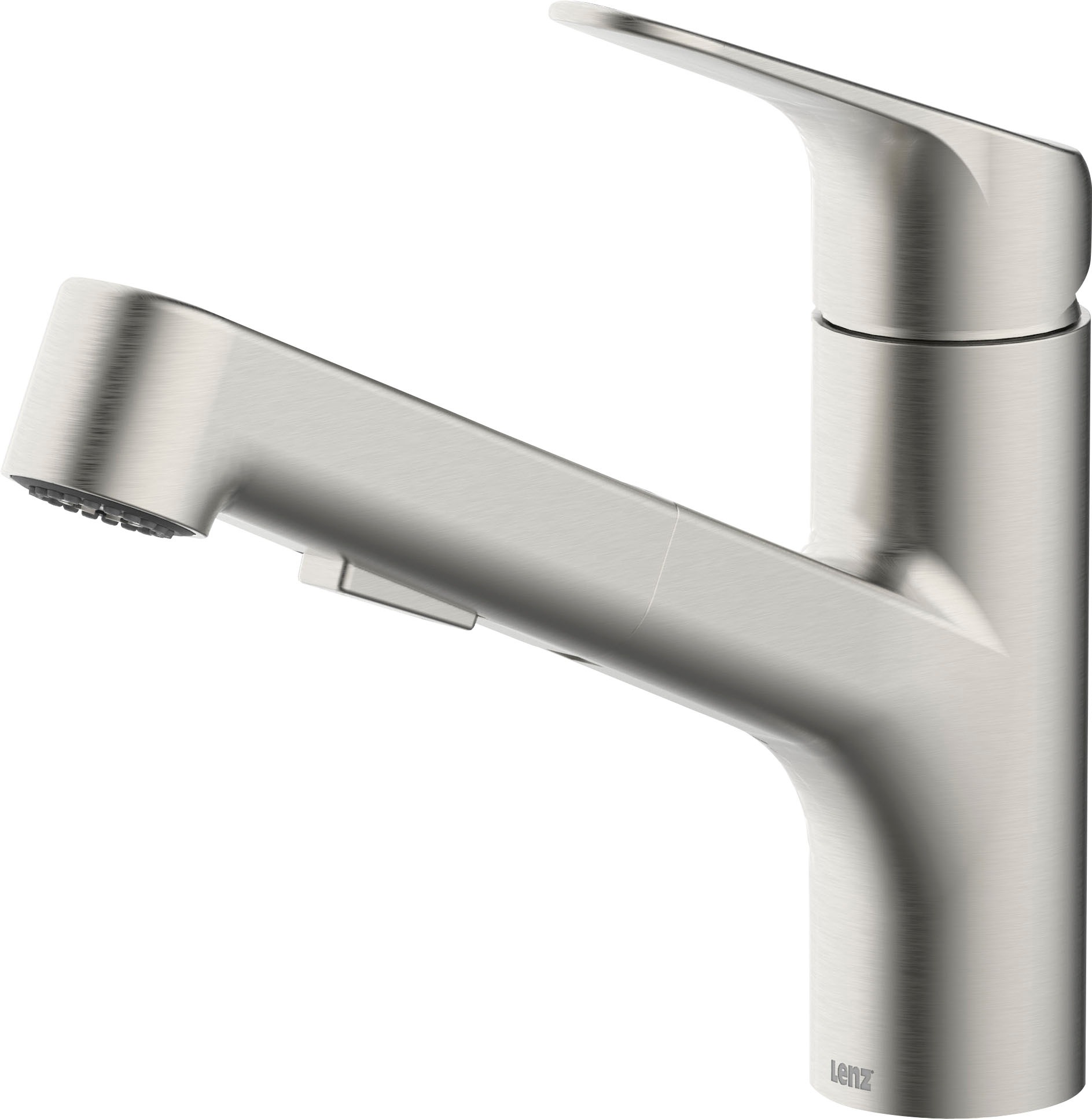 Küchenarmatur LENZ "KOA", silber (edelstahl, optik), B:5cm H:21cm T:25,5cm, Messing, Armaturen, mit Handbrause