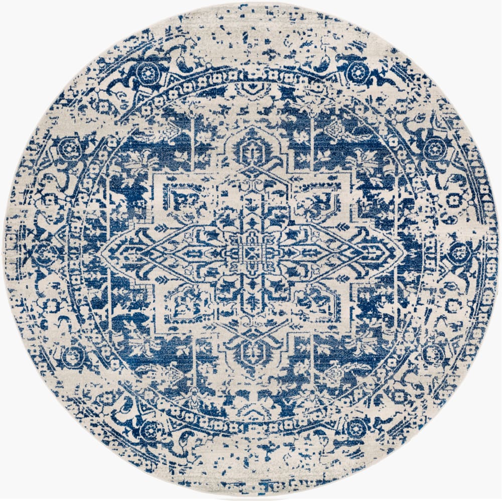 Tappeto Rotondo Vintage Orientale Blu/Bianco Ø 160