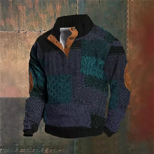 Per uomo Geometrico Felpa grafica Felpe Manica Lunga Felpa Henley Stampa Grafica Ferie Uscire Festival Fibbia Stampato Autunno Inverno