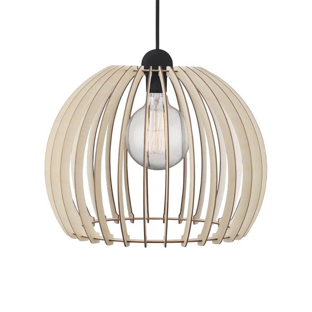 Lampada a sospensione in legno naturale nordico e cavo nero
