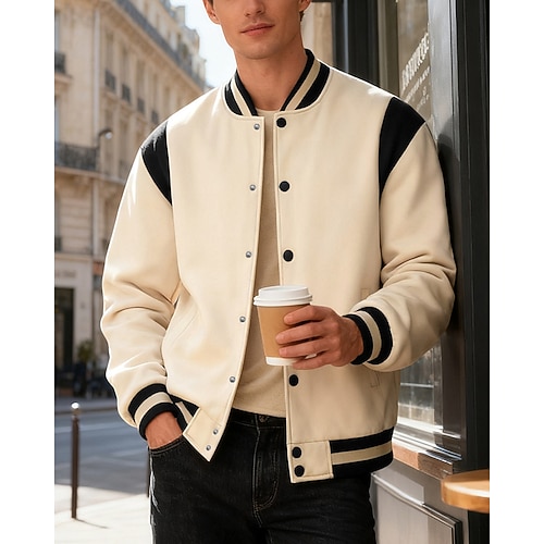 Per uomo Giacca Leggera Giacca Casual Giacca College All'aperto Vacanza Patchwork Tasca Primavera Autunno Blocco di colori Streetwear Elegante Collo alla coreana Regolare Grigio scuro Nero Vino Blu