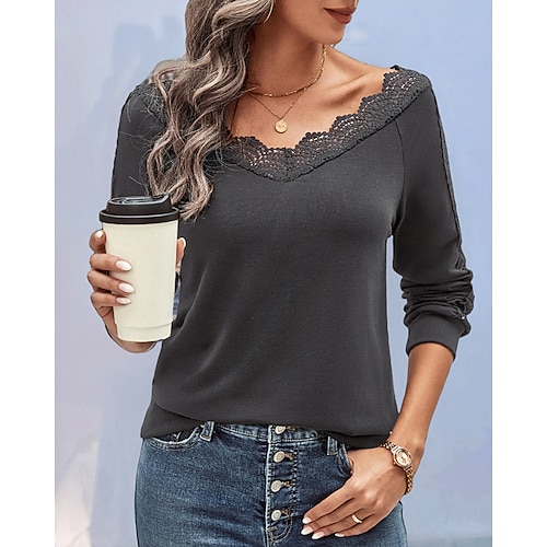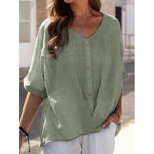 Per donna Camicia Misto cotone Blusa Semplice Moda Girocollo Quotidiano Streetwear Allacciato Pizzo Bianco Giallo Rosa Verde Estate