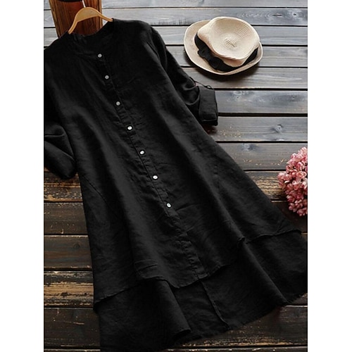 Per donna Blusa Tinta unica Quotidiano Elegante Casual Manica Lunga Collo Alto Top lunghi Quotidiano Bottoni Blu Nero Rosso Verde Albicocca Estate Primavera Autunno