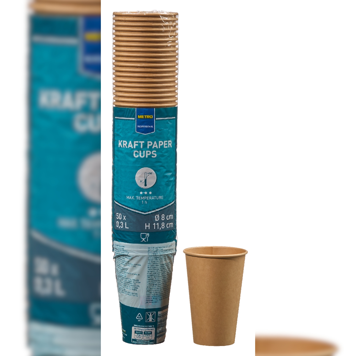 METRO PROFESSIONAL To-Go Becher, Kraftpapier, 0.3 L, Ø 8 x 11.8 cm, braun, 20 x 50 Stück