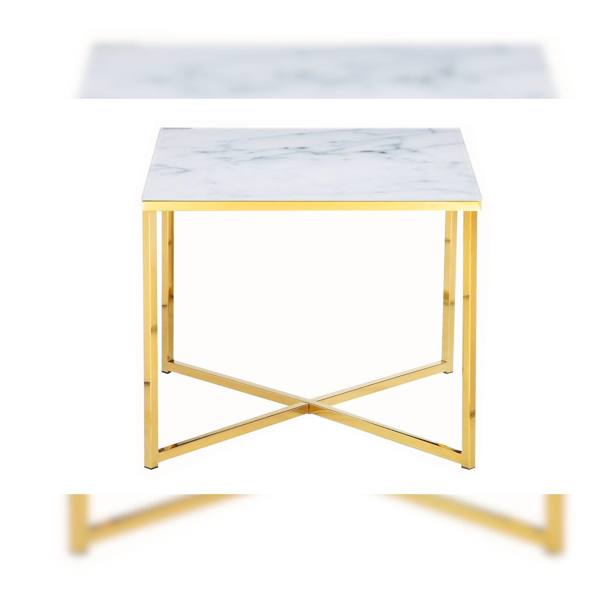 SalesFever Beistelltisch quadratisch | Glasplatte foliert in Marmor-Optik | Gestell Metall | B 50 x T 50 x H 42 cm | weiß-gold
