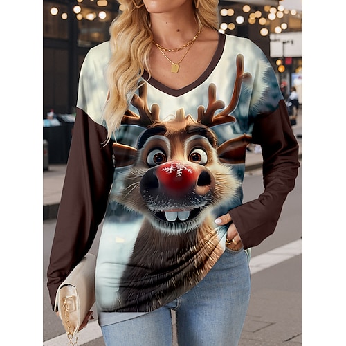 maglietta da donna moderna casual stampa manica lunga top regolari scollo a V quotidiano rosso blu marrone azzurro autunno inverno