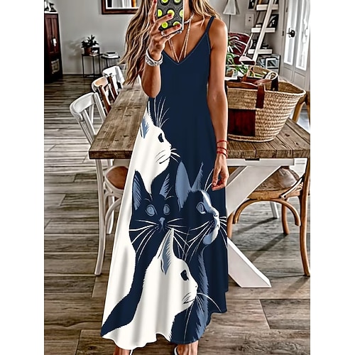 Per donna Abito maxi Vestito Estivo Abito a trapezio Abito Sottoveste Vacanza Casual Boho Spiaggia Vestibilità comoda Grafico Astratto Senza Maniche Scollo a V Bianco - nero Bianco Blu marino Grigio