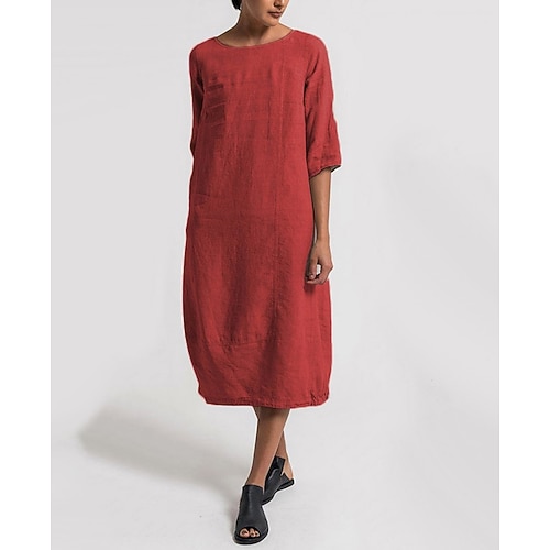 Per donna Abito Midi Vestito Casual Elegante Casual Weekend Vestibilità comoda Semplice Manica 3/4 Girocollo Rosa chiaro Nero Vino Blu marino Estate Primavera Autunno