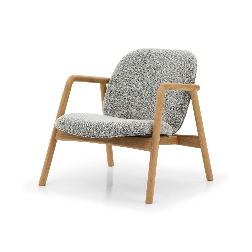 Poltrona in rovere massello, tessuto bianco e nero