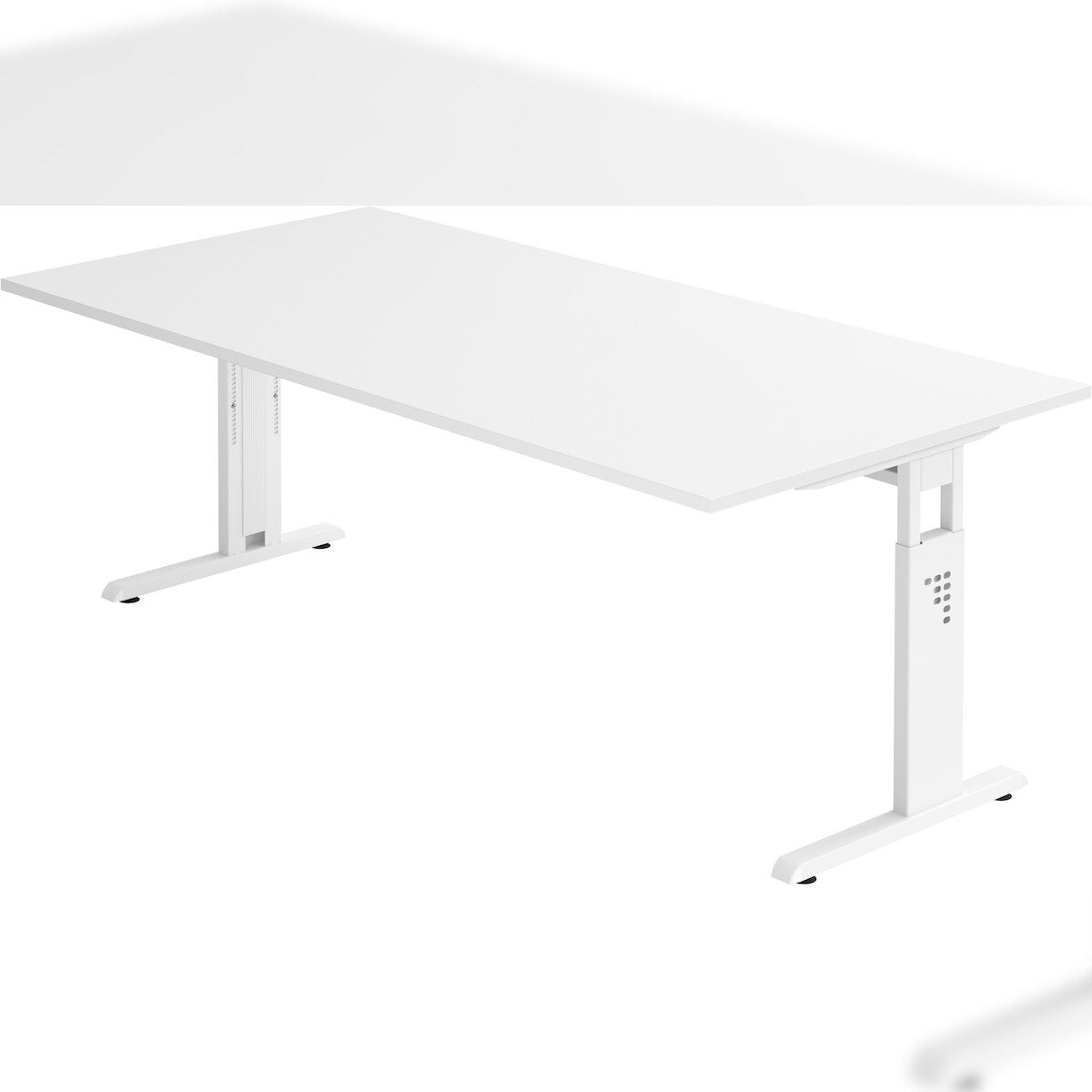 bümö höhenverstellbarer Schreibtisch O-Serie 200x100 cm in weiß, Gestell in weiß - großer PC Tisch für's Büro manuell höhenverstellbar, Computertisch