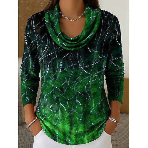 Per donna Tunica Maglietta Ombre Grafico Astratto Elegante Vintage Moda Manica Lunga Scollo a Cascata Top Regolari Quotidiano Uscire Weekend Stampato A Strati Blu Rosso Viola Verde Autunno Inverno
