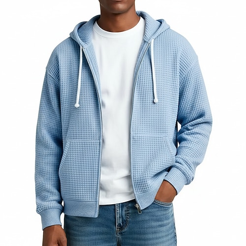 Per uomo Felpa con cappuccio Felpa con cappuccio a zip intera Felpa con cappuccio a nido d'ape Bianco Verde chiaro Blu marino Verde scuro Viola Con Cappuccio Semplice Con zip Testurizzato Casuale