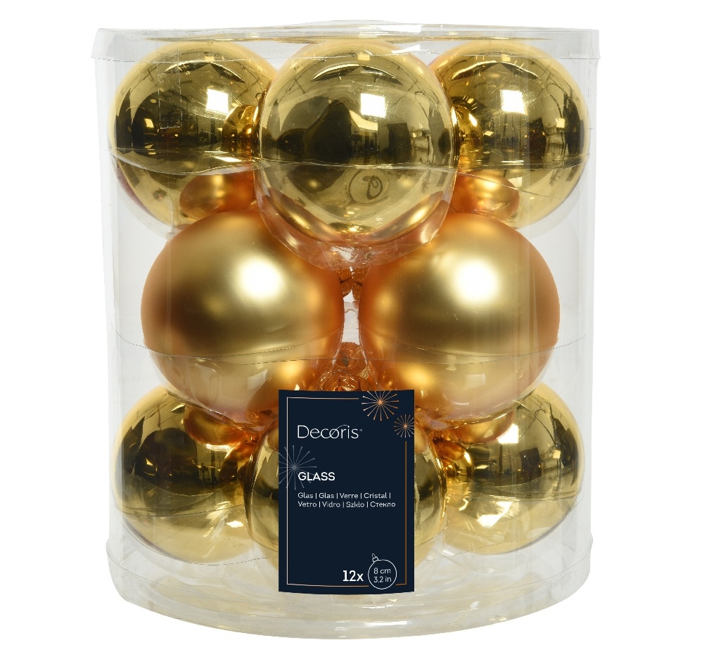 Weihnachtsbaumkugeln Glas Ø 8 cm 12 Stück hell gold matt