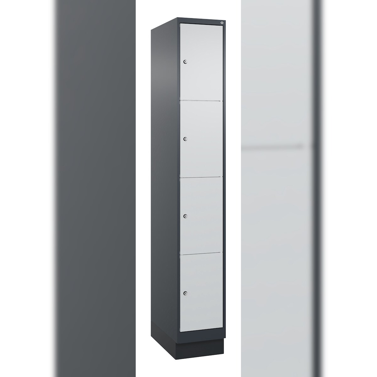 C+P Schließfachschränke Classic PLUS, Sockel, 4 Abteile, HxBxT 195x30x50cm, Zylinderschloss, Anthrazit/Hellgrau von PROREGAL