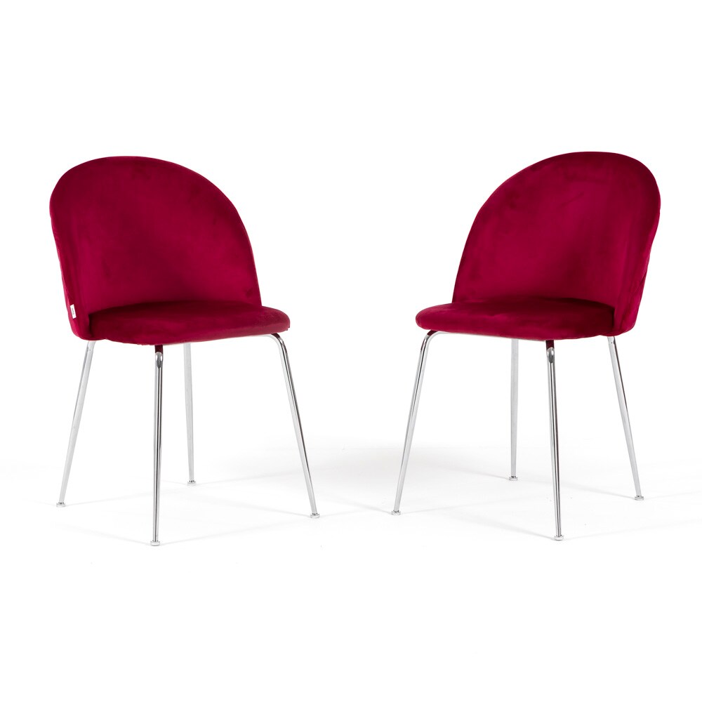 RATTATAN Set aus 2 Innenstühlen aus Samt, gepolstert, mit Metallbeinen, elegantes Design für Küche, Esszimmer, Bar und Restaurant – Sara – Amarena/Silber